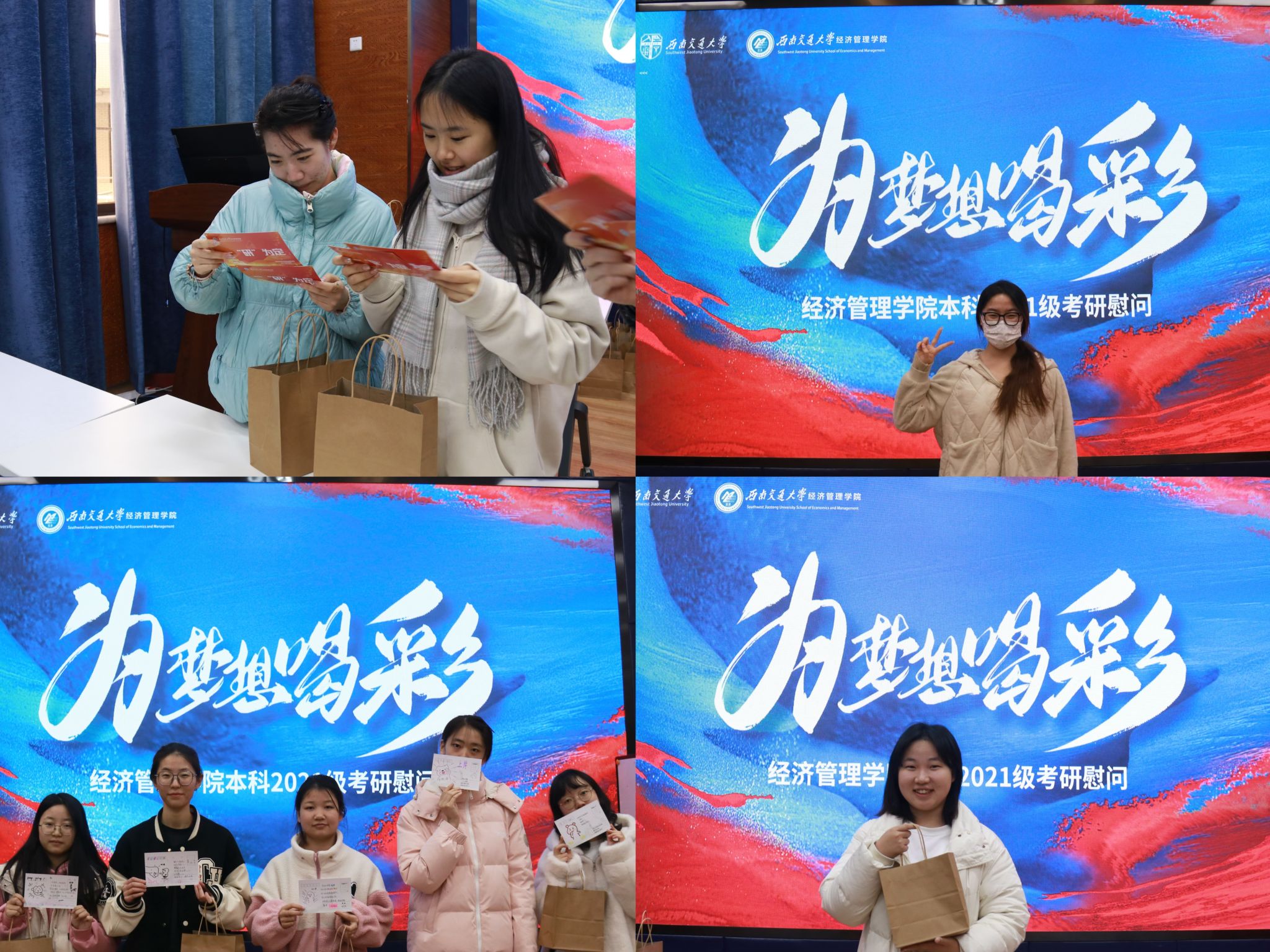 在J0218教室为2021级考研学生精心准备了一场考研慰问活动。