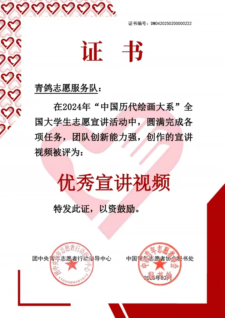 为深入学习贯彻习近平文化思想及党的二十大精神,积极响应“强国复兴有我”群众性主题宣传教育活动的相关要求,促进中华优秀传统文化的传承发展与国际交流,团中央青年志愿者行动指导中心、教育部中外语言交流合作中心、中国外文局文化传播中心、浙江大学与中国文物报联合开展了2024年“中国历代绘画大系”全国大学生志愿宣讲活动。近日,在宣讲服务团评选活动中,17吃瓜