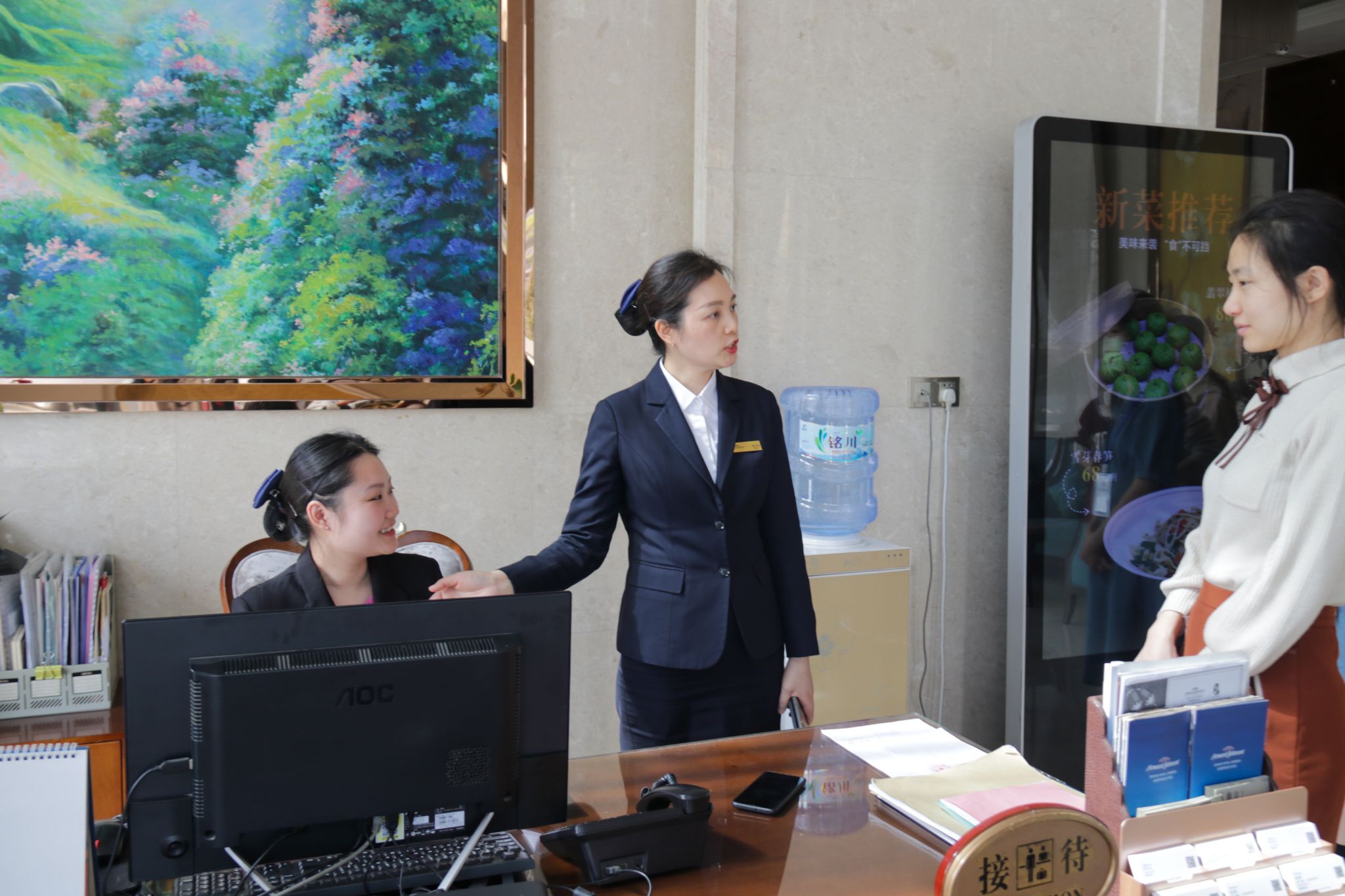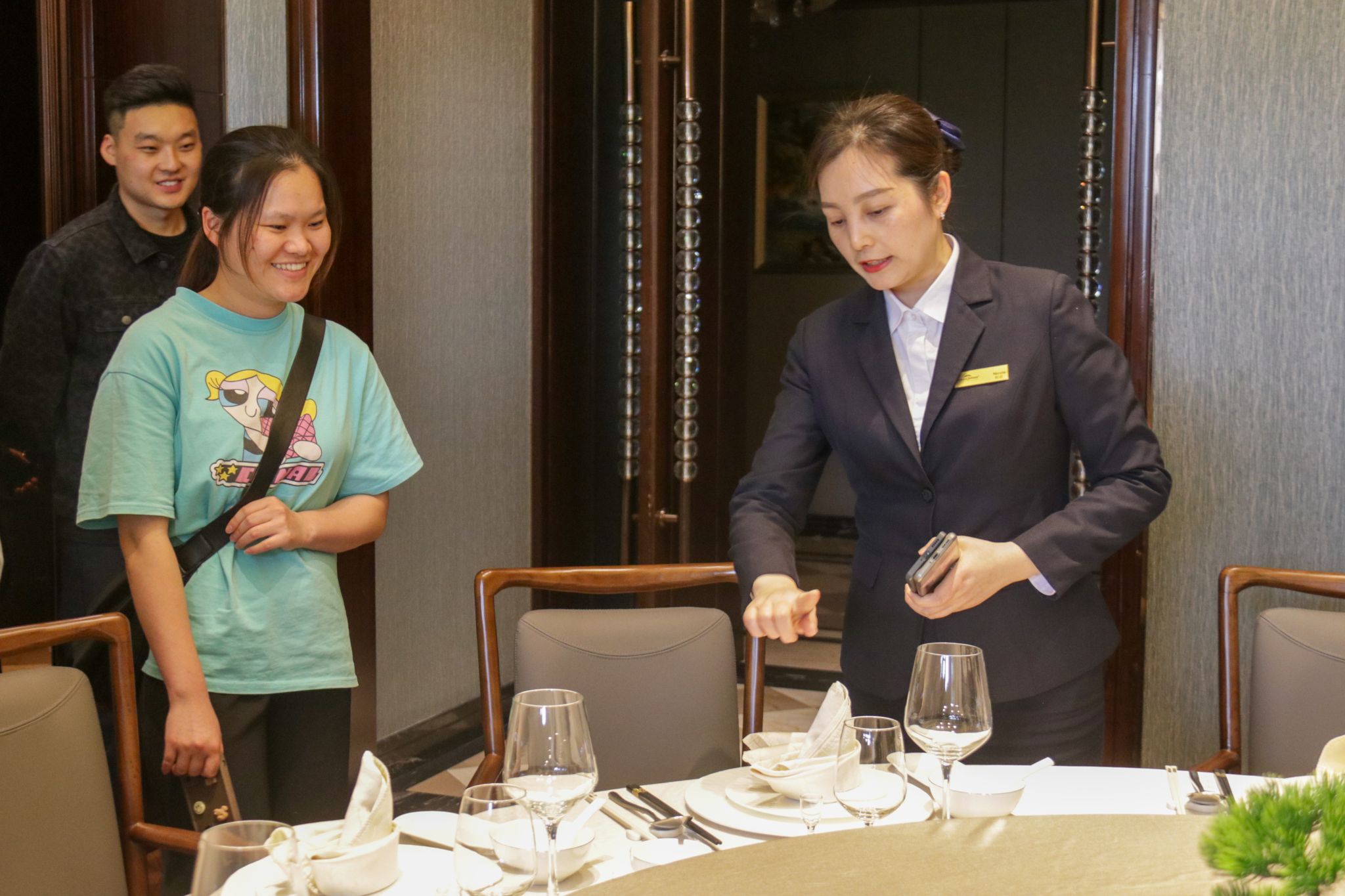 随后,酒店人力资源部经理与学生们进行现场座谈,提供就业指导。经理指出服务行业在仪容仪表、性格、技能学识方面的特殊要求。随即,酒店方解答学生们关于简历撰写、面试要求、职业发展方面的疑问,强调以下三点:第一,在简历筛选过程中,不单关注实习经历,更关注个人在组织中的创新性突破,鼓励高校学生多实践、多思考,敢于表达自我;第二,面试时要着装正式、妆发得体,积极与面试官进行眼神交流,展现青年一代自信、大方的精神面貌;第三,职业发展的过程也是重新学习的过程,在服务行业,更要能守住本心、深耕行业,方能走得更远、走得更稳。