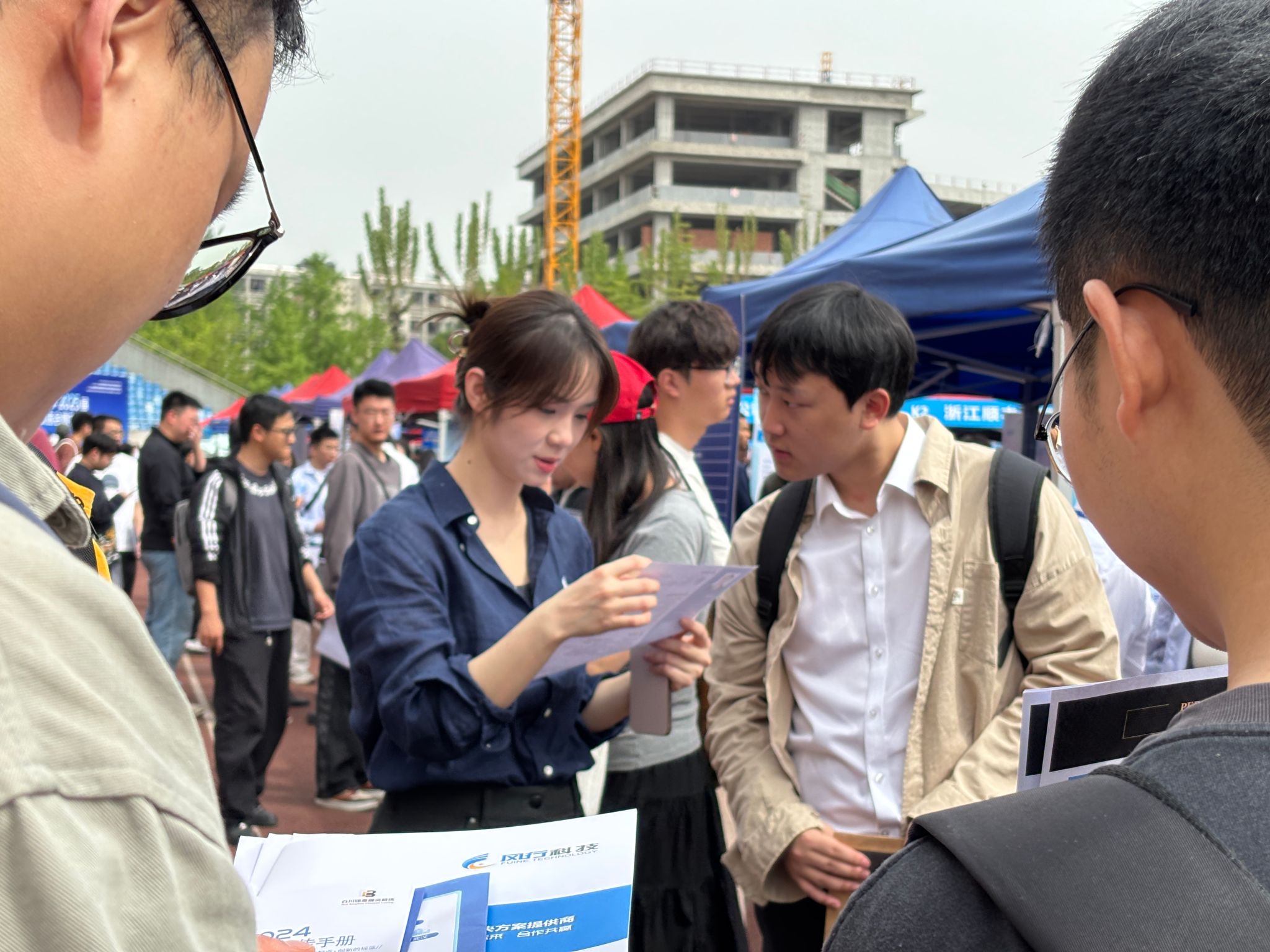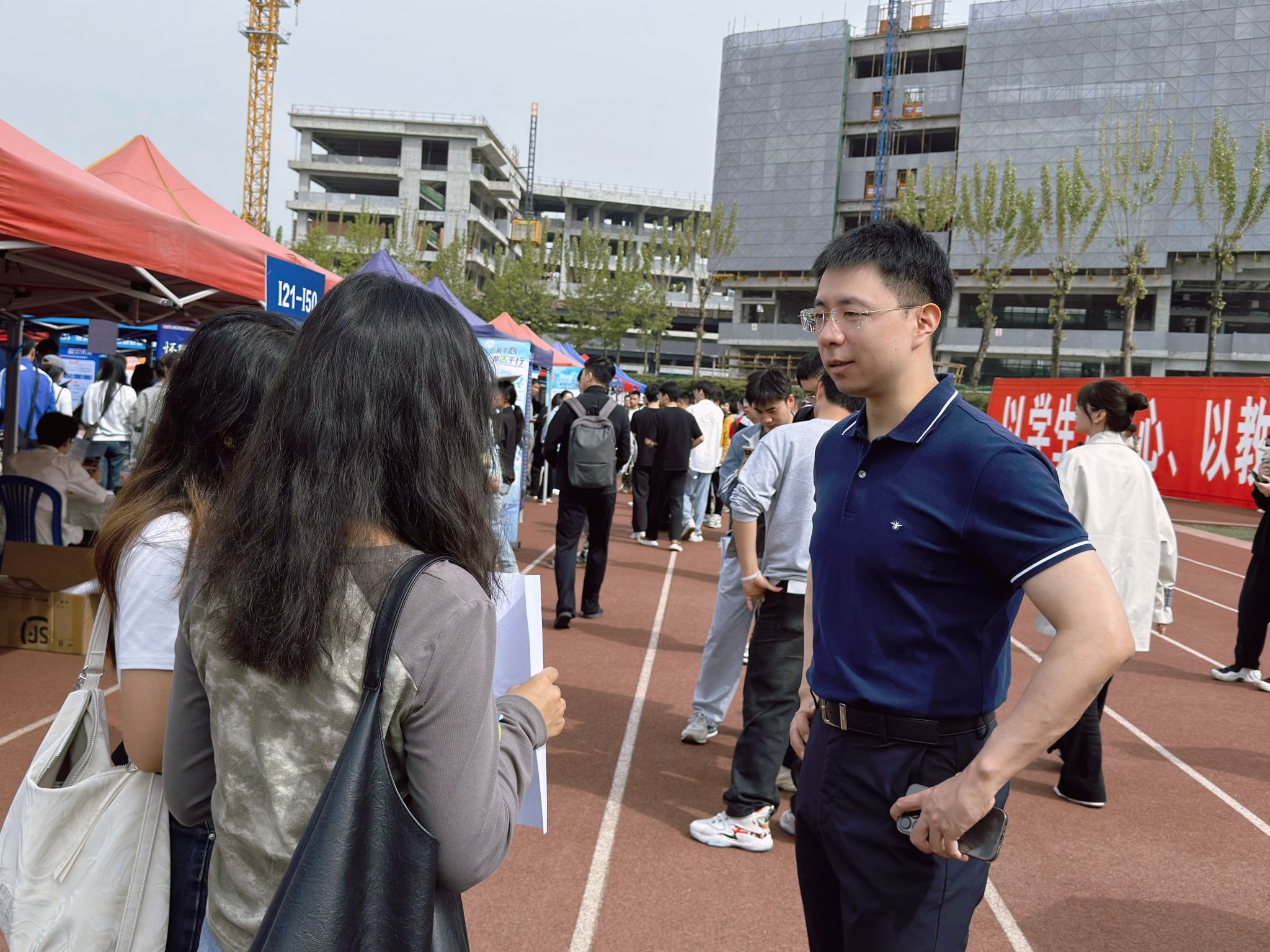 双选会现场,学院领导与现场求职毕业生亲切交谈,针对简历优化、面试技巧、职业规划等提出指导意见,鼓励学生把握机遇、主动对接,并向用人单位重点推介学院毕业生优势特色。