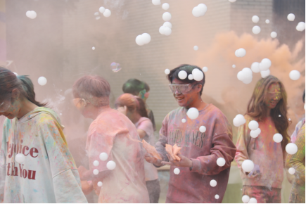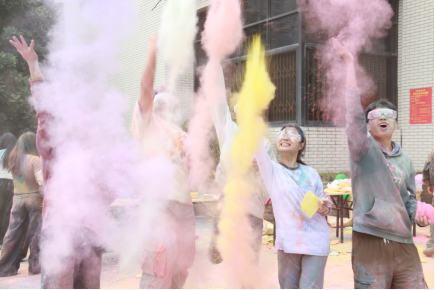 3.3公里的赛道串联起校园标志性点位,参与者们领取彩色粉末相互喷洒,衣服被染成斑斓的色彩,奔跑的身影与纷飞的彩粉交织成青春的画卷。活动全程不设竞技压力,参与者跑完一圈后可自由选择续跑或在休息点放松,护目镜佩戴等安全提醒也贯穿始终,让趣味与安心兼具,更在互助互动中践行“同心协力,砥砺前行”的精神。