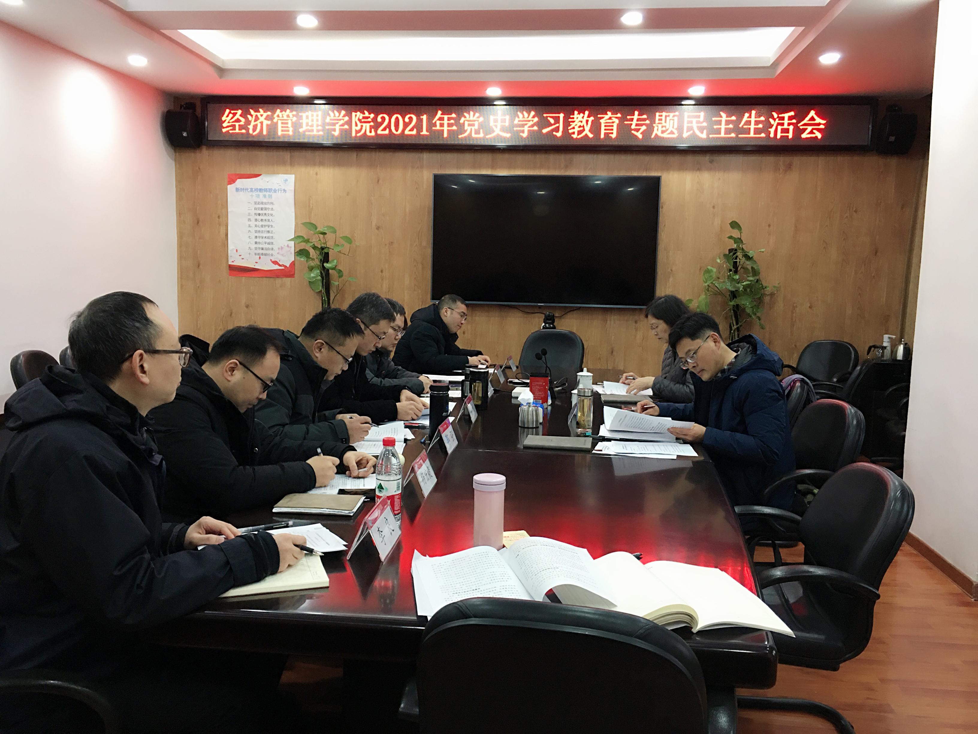 党委于2022年1月10日上午9:00在九里校区0607会议室召开了党员领导干部党史学习教育专题民主生活会。学院联系校领导、学校党委常委、副校长刘长军,学校党史学习教育巡回指导组成员陈燕灵及学院全体党员领导干部出席了会议。会议由学院党委书记王斌主持。