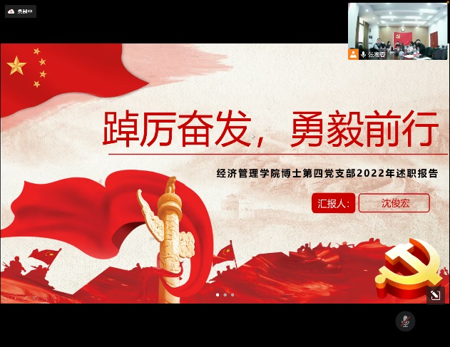 述职伊始,王斌传达了学院党委关于党支部考核的精神,讲解了述职考核议程、考核要求和评分办法。