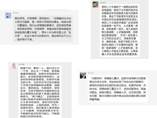 通过此次活动,各非全专硕临时党支部深入学习研讨了党的二十大精神需要把握的重点内容,进一步激发了全体党员学习、干事、创业的热情,促进了党建与学习、工作、生活的深度融合。下一步,各临时党支部将继续把学深悟透党的二十大精神同班级工作和党员同志的本职工作有机结合起来,把学习切实转化为每个党员的强大动力,推动党的二十大精神在行动中落地生根。