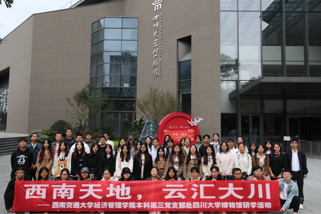 本科第三党支部书记苏扬和副书记张媛媛带队前往四川大学博物馆,开展本科第三党支部“西南天地,云汇大川”主题研学活动,支部党员和入党积极分子共同参加了本次活动。