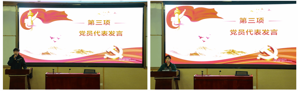 在党员代表发言环节中,张鑫竹同志作为代表分享了自己的感受。她表示自己感恩成为中国共产党这个先进组织中的一员,在这次政治生日会上感到了一种责任和使命,她也会在以后的工作中不忘初心,牢记使命,不断谱写马克思主义中国化时代化新篇章。之后,贺小轩同志发言,表达了对党员同志的祝贺和嘱托,同时对新加入党组织的党员同志们提出希望,要做到思想进步,政治合格,立志成为祖国合格的建设者和接班人,祝愿大家能够在未来的日子里能够不忘初心,牢记使命,乘风破浪,扬帆远航。