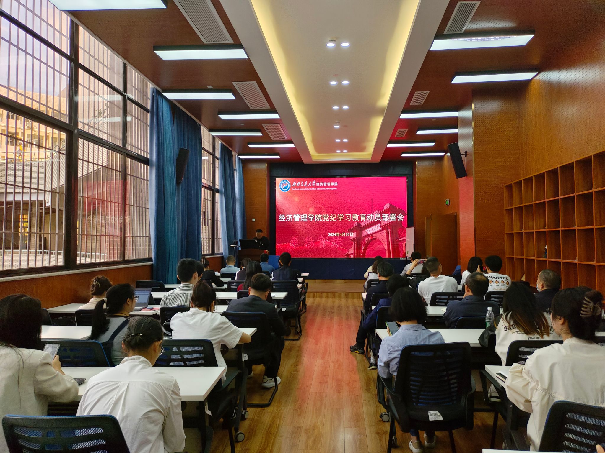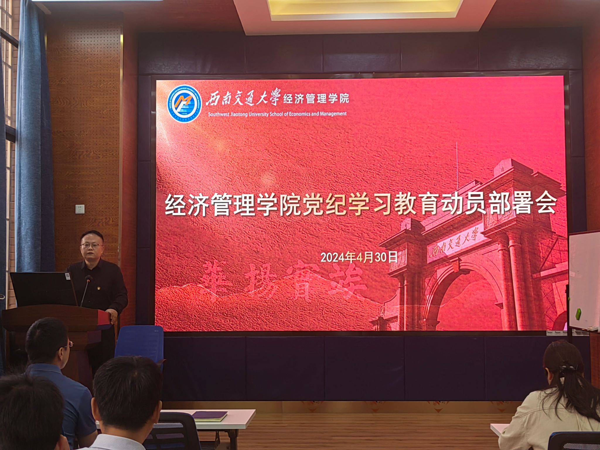 党委召开党纪学习教育动员部署会。学院党委书记郭强同志主持会议,党委副书记、纪委书记晏理斌同志作学习教育动员,学院领导班子成员、党委委员、师生各党支部书记和委员参加会议。