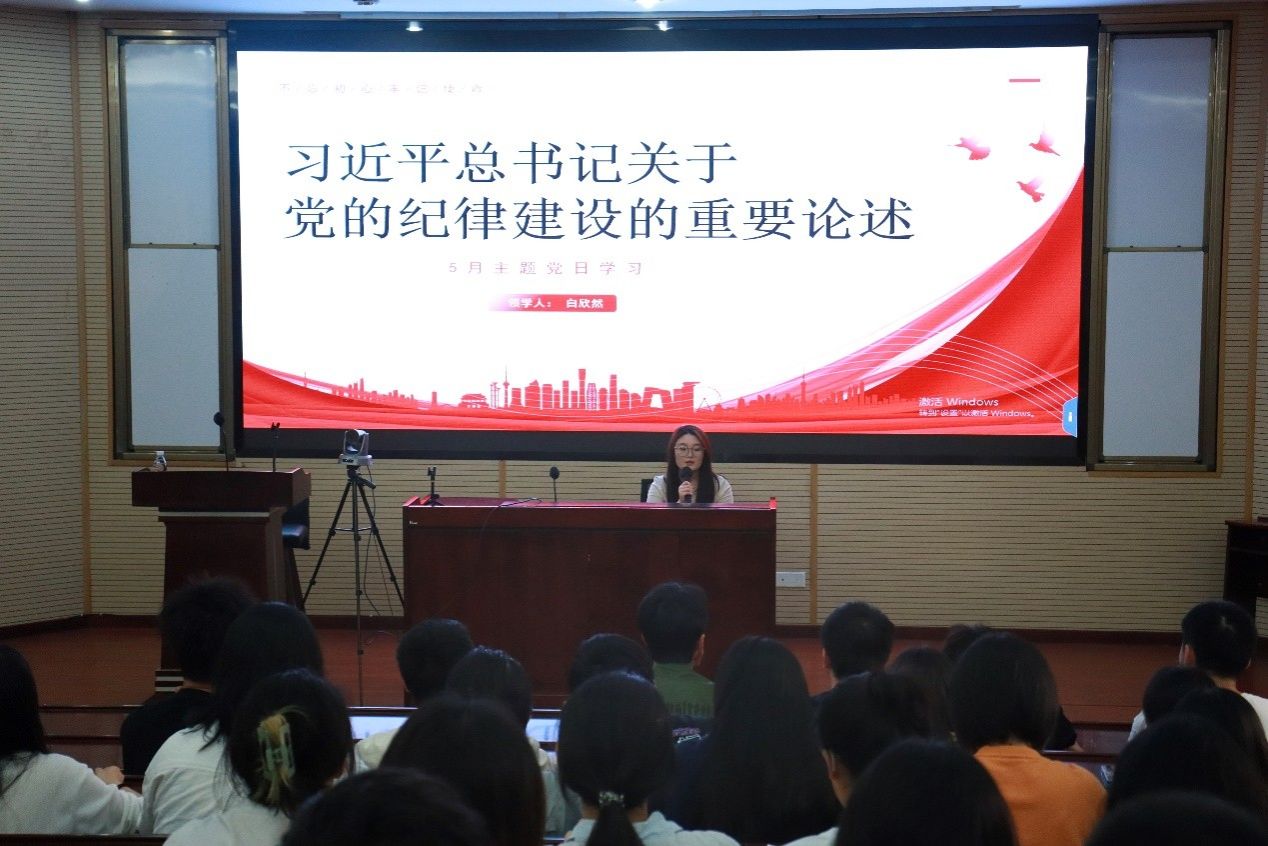 在郭强书记对《条例》领学后,本次主题教育专题党课进入到了第二个阶段。由党员白欣然带领支部成员带领学习了习近平总书记关于党的纪律建设的重要论述。