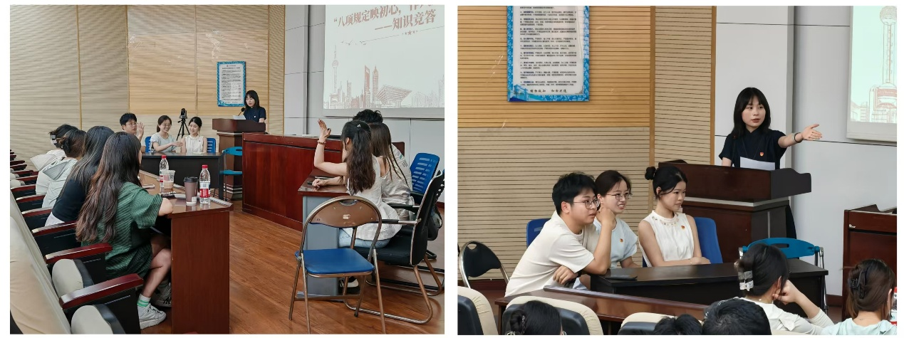 612日下午,八项规定映初心,作风建设青年行趣味研学系列活动在九里0215会议室举行此次活动分为知识竞答、辩论赛与情景剧演练三大环节。来自三个支部的六位党员同学组成两支队伍,围绕中央八项规定精神相关主题展开紧张激烈的知识抢答有效增强党员同志们对中央八项规定精神的理解和认同。