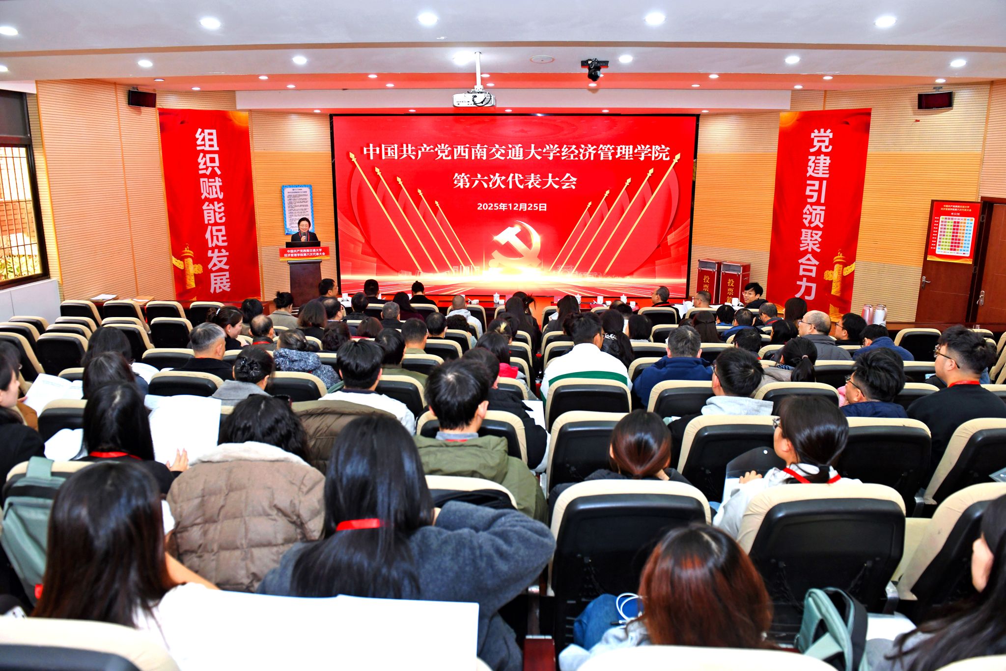 第六次代表大会在九里校区0号楼0215报告厅隆重召开。学校党委副书记高平平、党委组织部副部长何诣寒出席会议。学院领导班子成员,第五届党委委员、纪委委员,第六届“两委”委员候选人预备人选,党员代表参加会议。学院党委副书记余小英主持会议。