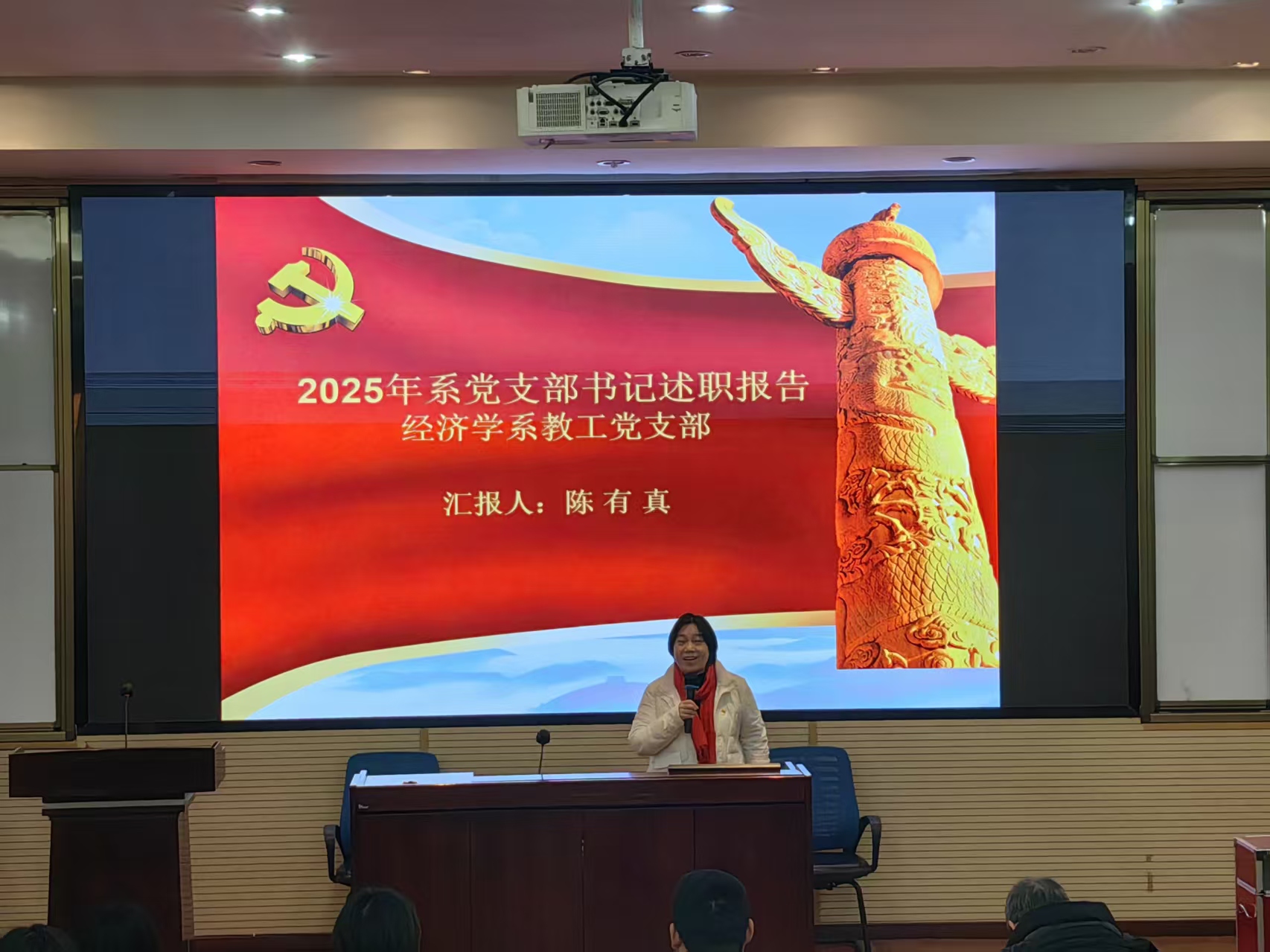 会上,学院教职工党支部书记与学生党支部书记依次进行现场述职。各位书记紧扣党建核心任务,围绕党员教育培养、管理监督、组织动员、宣传引导、凝聚力提升以及服务师生等方面的具体实践,着重汇报了各支部在围绕中心任务、服务改革发展大局中取得的实际成效。述职内容全面系统,涵盖了年度基础工作的扎实推进、特色亮点工作的创新彰显、存在不足的深刻反思以及未来工作的规划展望。各支部通过详实的数据、具体的案例,系统总结了过去一年的工作进展与特色成果,深入剖析了当前面临的挑战与问题,并据此提出了切实可行的改进思路和下一阶段的奋斗目标,明确了未来工作的着力方向。