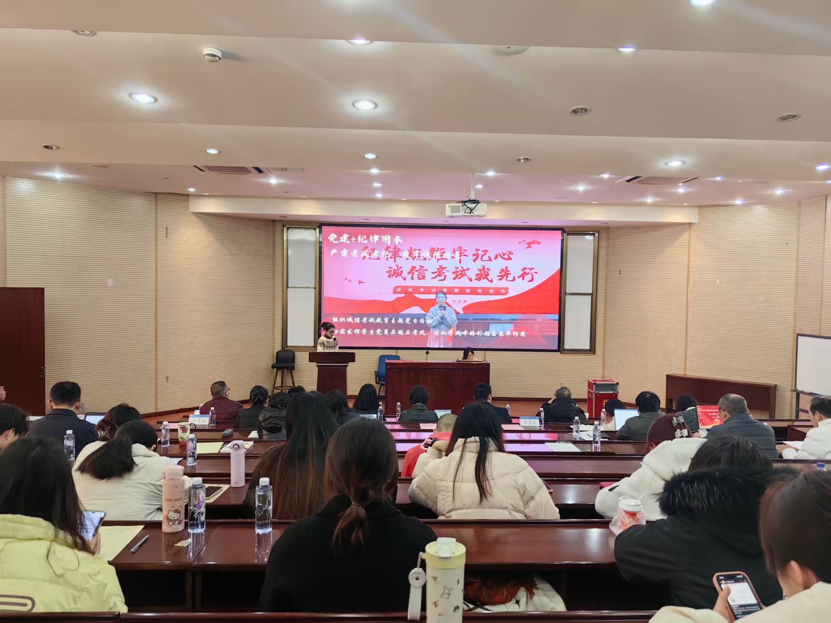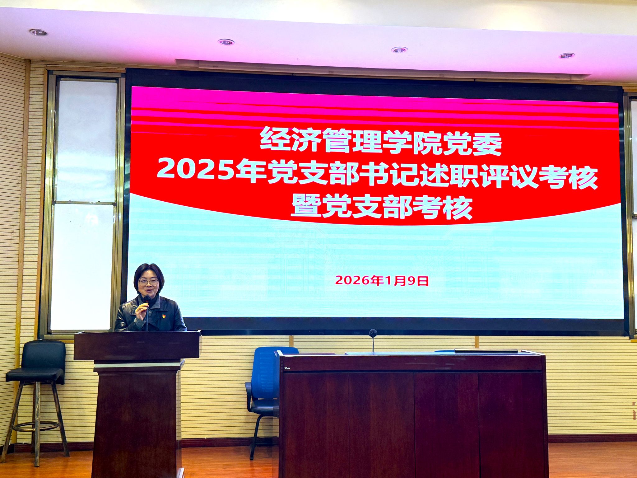 党委2025年度党支部书记述职评议考核暨党支部考核会议在九里校区零号楼0202教室顺利举行。学院党委委员、纪委委员、组织员以及全体师生党支部书记出席会议,并共同完成了现场考核评分工作。会议由学院党委书记蒋佳主持。