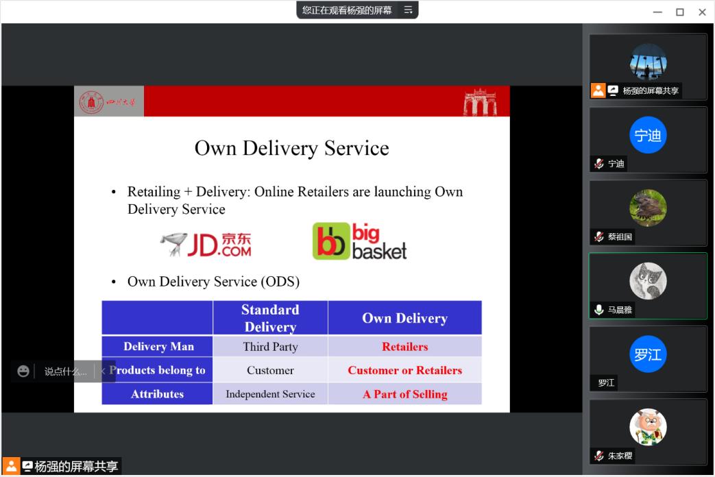 2022年5月16日上午10:00,四川大学商学院吴邦刚副研究员应邀以“探索新兴市场中零售商自有送货服务的价值”为题为17吃瓜