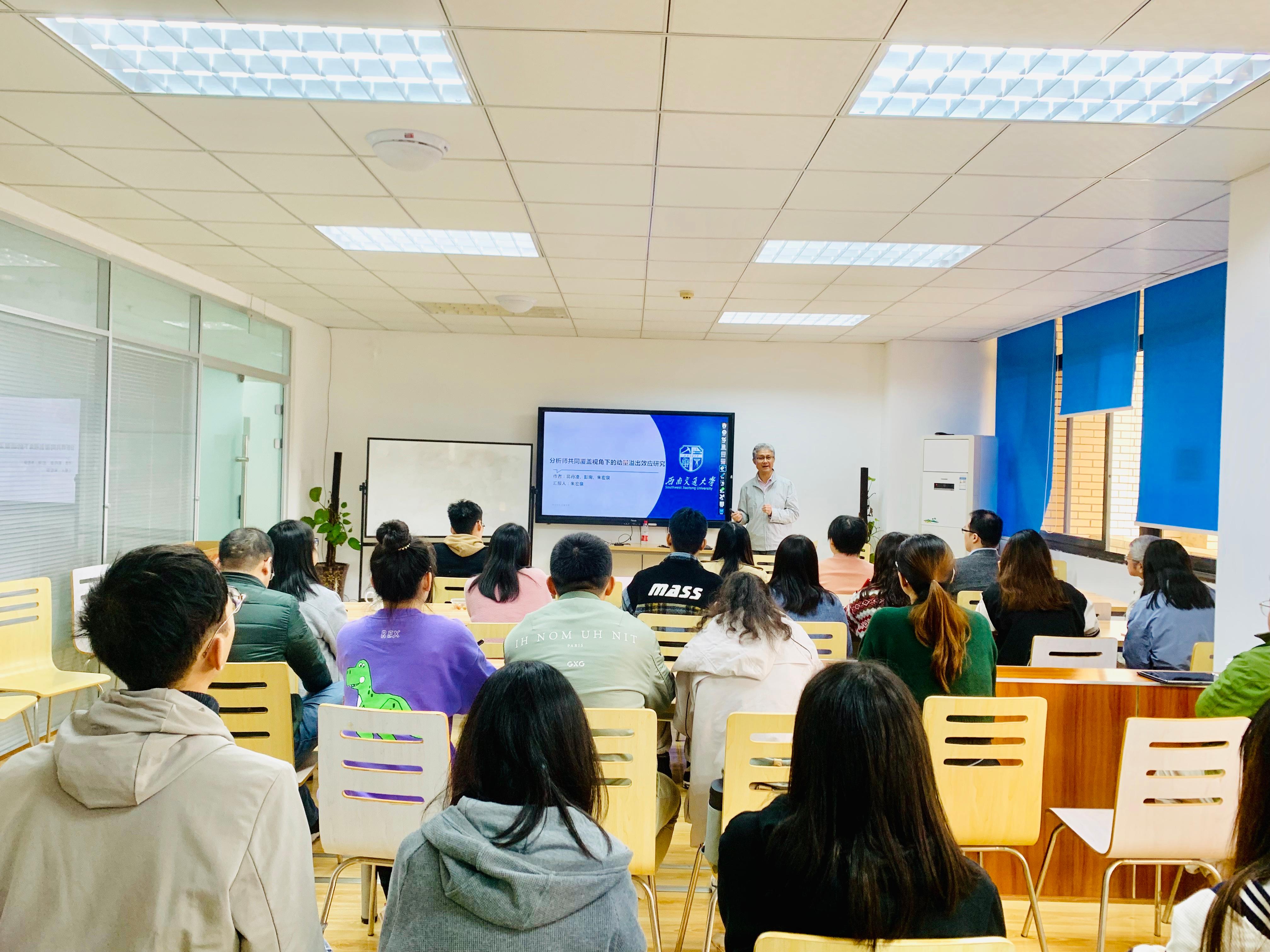 2021年10月28日下午13:00在九里校区0411教室,金融与财务学系中国特色金融研究创新团队朱宏泉教授以“分析师共同覆盖视角下的动量溢出效应研究”为题为经管学院的教师与学生带来一场精彩的学术研讨会。17吃瓜