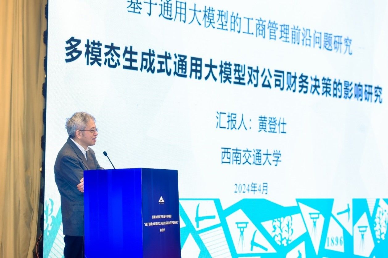 黄登仕教授围绕其主持的项目“多模态生成式通用大模型对公司财务决策的影响研究”(项目批准号:72342028,直接经费200万元)汇报了项目的学术思想与创新、研究主旨、关键科学问题与研究内容、研究方案与技术路线,以及项目最新进展等情况。与会专家认真听取了项目汇报,围绕汇报内容进行了深入的交流,并提出了具体的意见和建议。