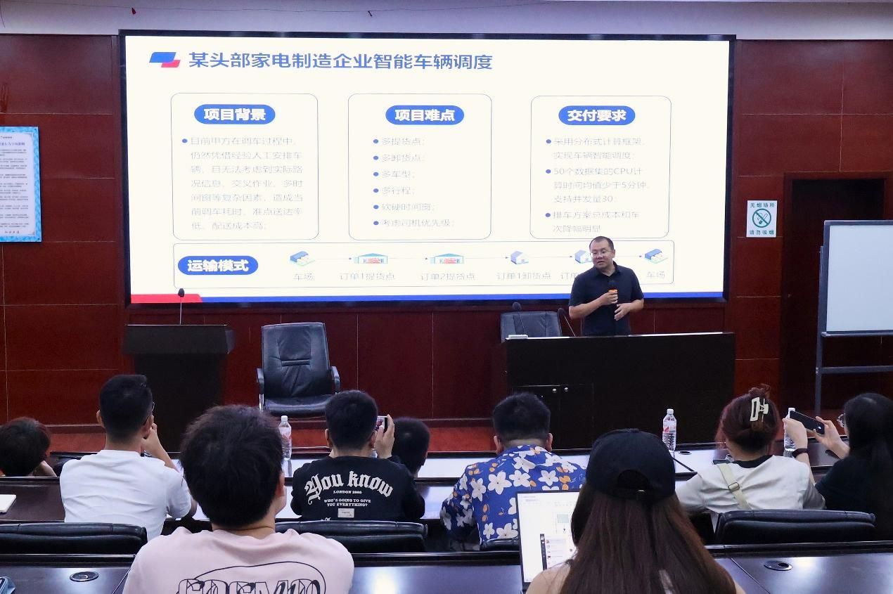 在讲座中,秦虎教授深入分析了物流和生产制造领域的一系列重大问题,涵盖了车辆路径问题、三维装箱问题、排样问题及区域网络规划问题等。他指出,物流运输问题的复杂性和多样性需要注重实际应用效果,通过应用运筹学和优化算法来提高企业效率,减少运营成本则是关键。