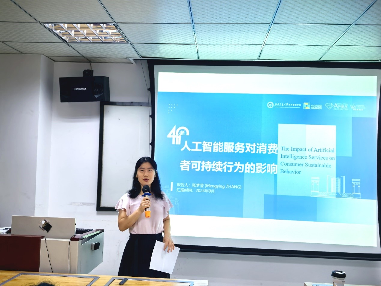 市场学系的助理教授张梦莹博士,围绕“人工智能服务对消费者可持续行为的影响”这一主题展开,学院部分师生到场聆听,讲座由市场学系副系主任范春梅副教授主持。