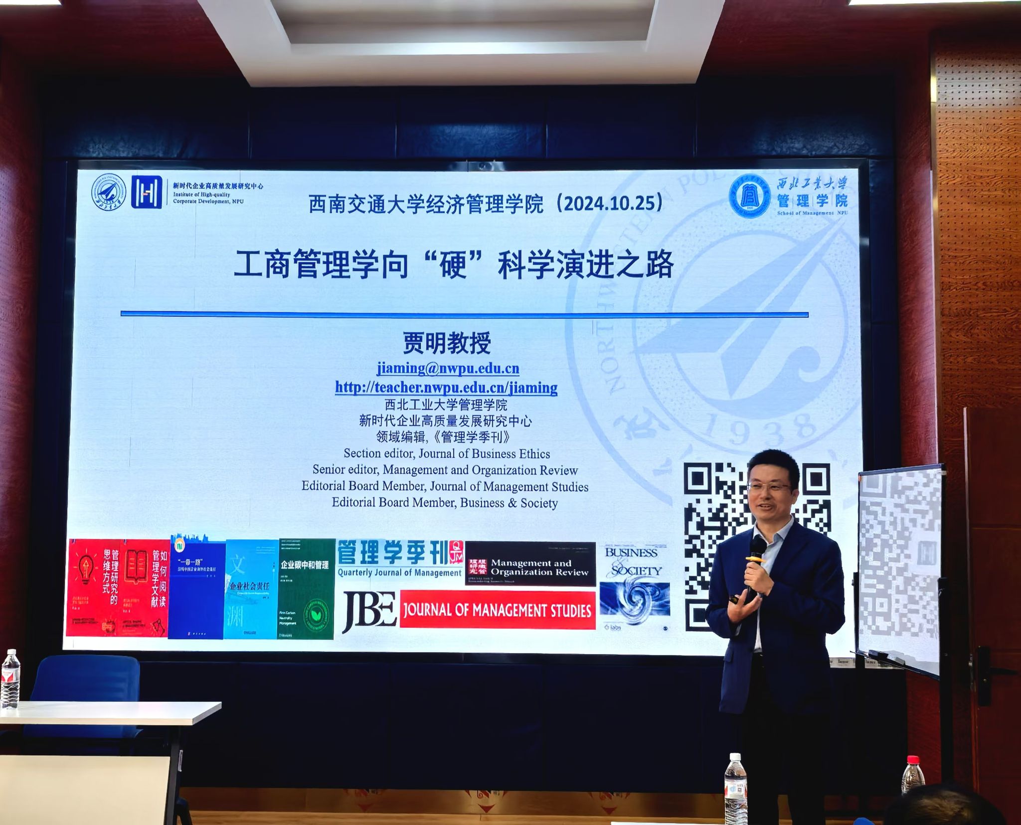 2024年10月25日下午,西北工业大学管理学院贾明教授应邀在九里校区17吃瓜