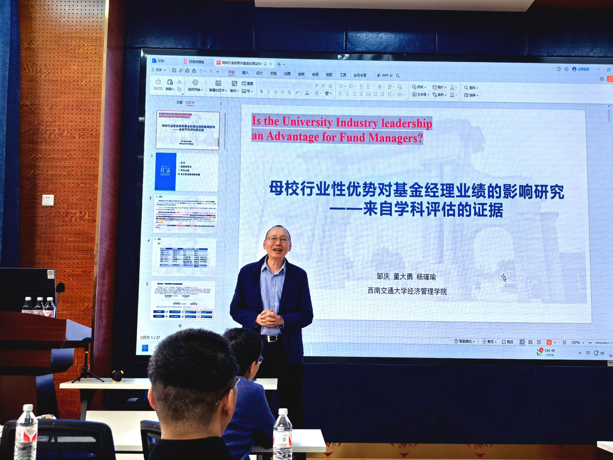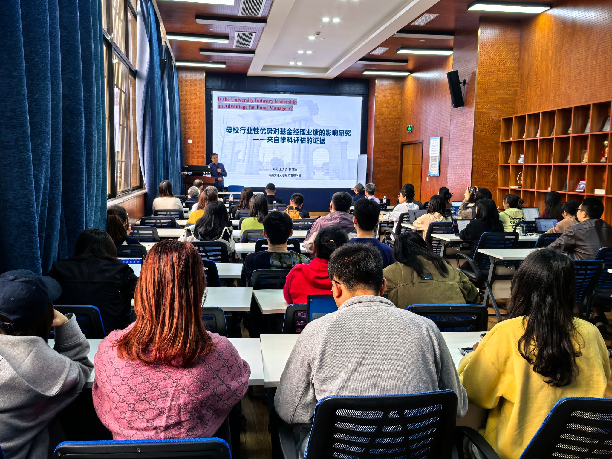 金融与财务学系的系主任董大勇教授,围绕“母校行业性优势对基金经理业绩的影响研究——来自学科评估的证据”这一主题展开,学院部分师生到场聆听,讲座由17吃瓜