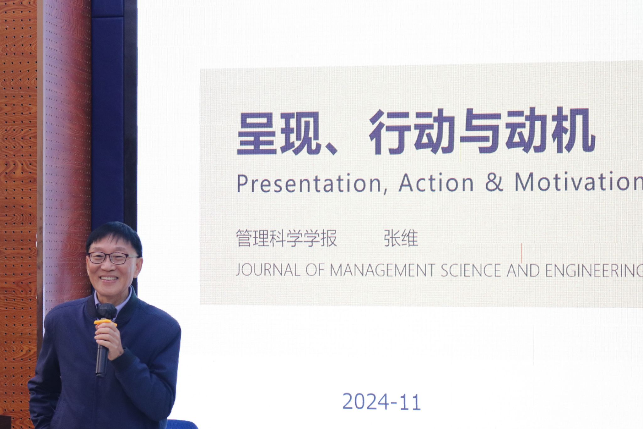 张维教授从学术生态系统的视角,围绕研究中的动机、行动和呈现三个方面,与师生们进行了深入分享。首先,在“动机”方面,张教授结合其担任期刊编辑的丰富经验,从项目选择、“本土化”与“普遍性”、“热点”以及期刊的“选题”多个层面展开论述,为师生们揭示了学术研究中的核心驱动力。接着,在“行动”方面,张维教授重点强调了论文研究的严谨性与规范性,以及如何讲好中国故事,增强研究的学术价值。最后,在“呈现”方面,张教授以论文题目、摘要、引言和文献综述为切入点,逐一讲解了论文写作的关键环节。张教授通过多个实际案例,生动阐释了如何用简练的学术语言,讲述一个有趣且富有意义的学术故事。他指出,一篇优秀的学术论文本质上就是用科学的语言讲好一个故事。