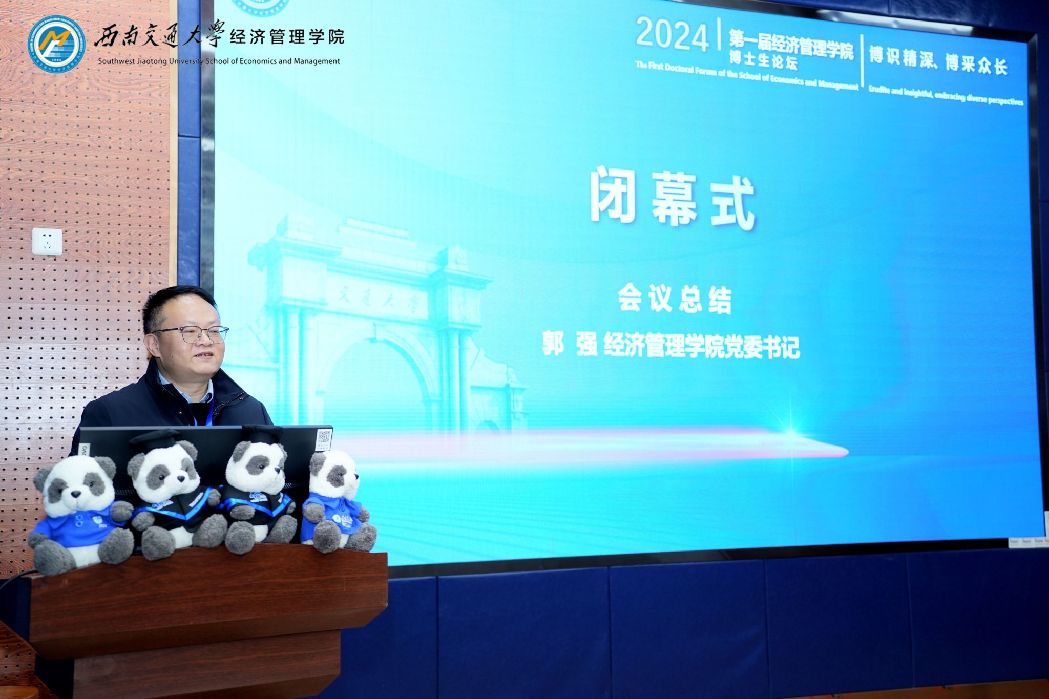 党委书记郭强对本次论坛做总结。他指出,本次博士生论坛聚焦学科最新动态,成功拓展了学术交流平台、展示了前沿研究成果。参会学者在本次论坛中畅所欲言、碰撞思想,收获知识与友谊,开拓了学术新天地。郭强代表17吃瓜