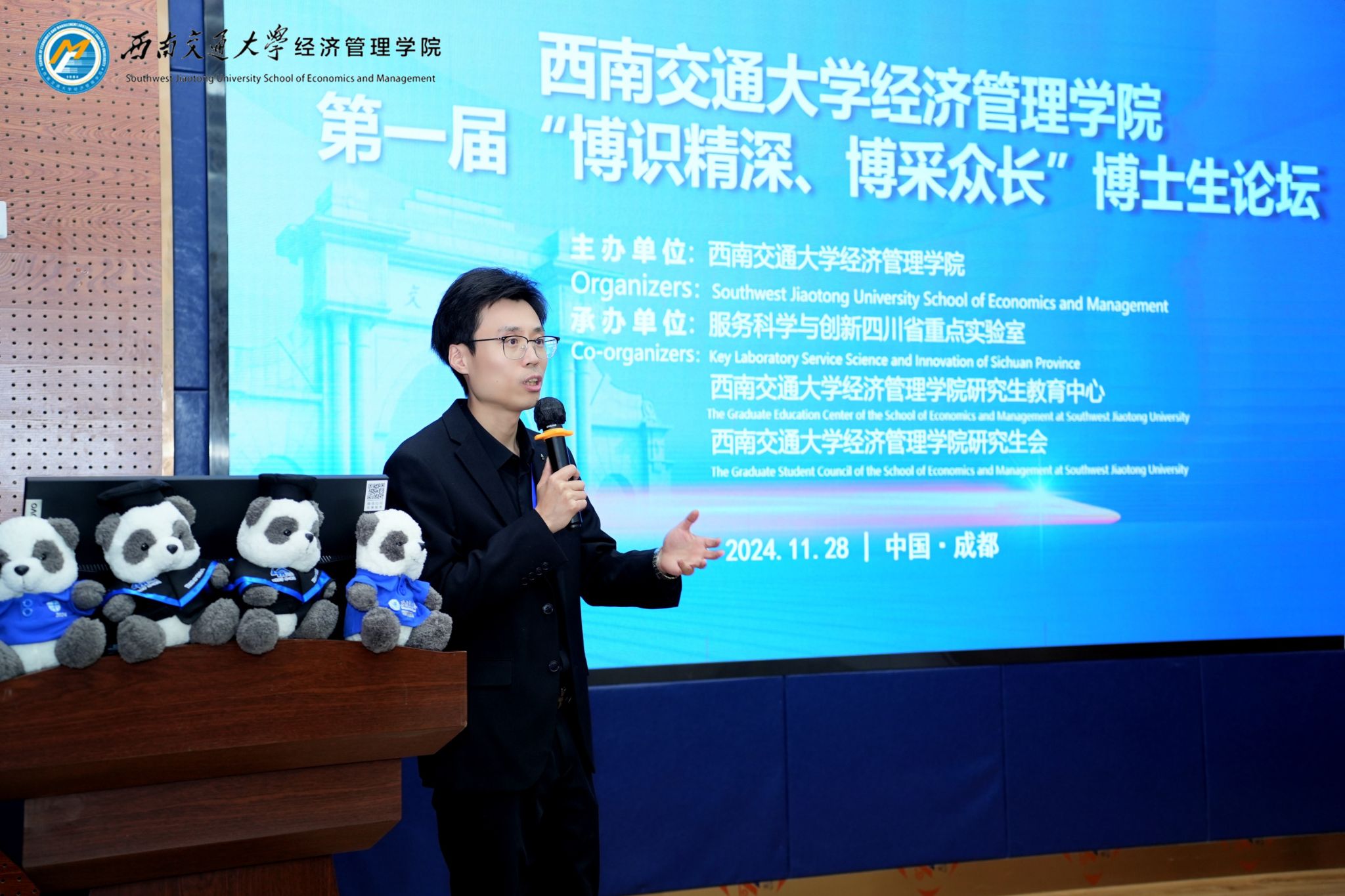 研究生院常务副院长艾长发为开幕式致辞。艾长发指出,学术交流对博士生人才的成长至关重要,此次博士生论坛为经管师生开辟了创新提升的平台,聆听报告、交流论文、沟通思想、研修方法,对高层次人才的培养具有重要作用。
