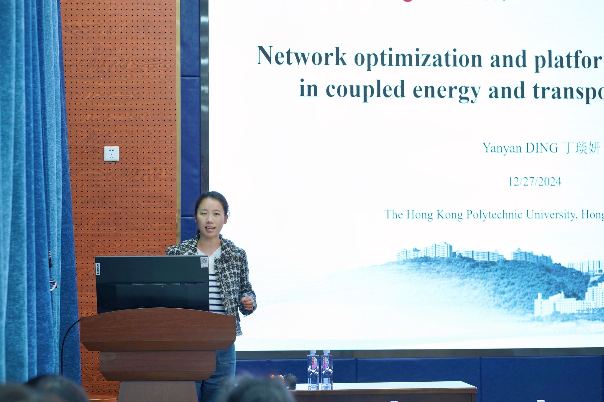首先,副院长马锋对丁琰妍博士的学术成果进行了介绍,并对她的到来表示热烈欢迎。丁琰妍博士对本次研究的背景和思路作出了详细的介绍,她针对能源与交通耦合系统中的网络优化与平台定价策略进行深入研究,探讨了能源系统与交通系统互相作用下的四种不同情形。