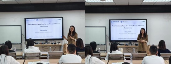 师生开展题为“From Premium to Mass:How Service Robots Shift Brand Premiumness”的讲座,深入探讨在高端零售和服务业领域是否应该使用机器人或其他自动化服务的问题。讲座由17吃瓜