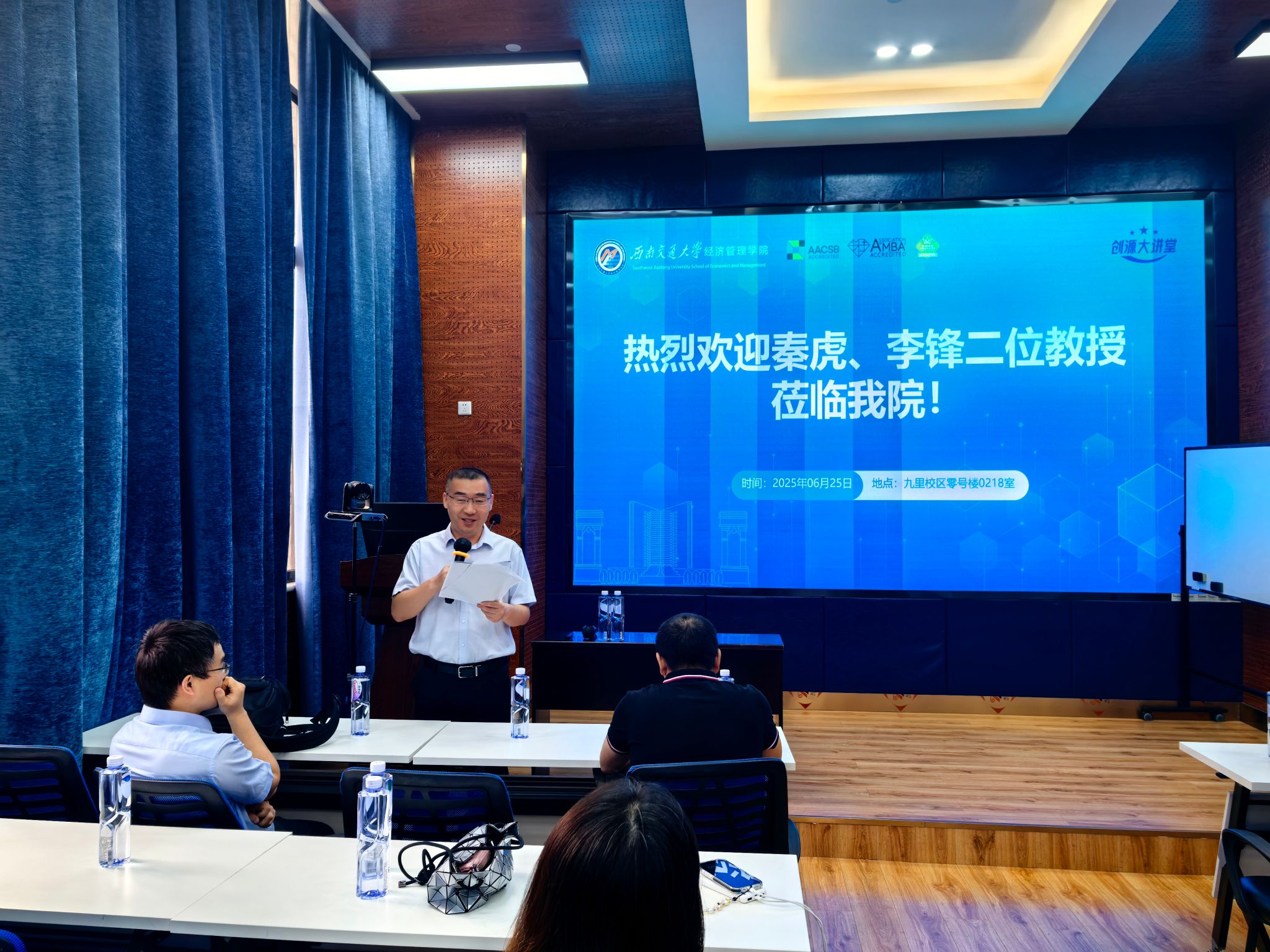 副院长聂佳佳教授主持,学院部分教师及研究生积极参加,现场学术氛围浓厚。讲座开始前,聂佳佳副院长简要介绍了秦虎教授和李锋教授的学术背景与研究成果,对两位教授的到来表示热烈欢迎和诚挚感谢。