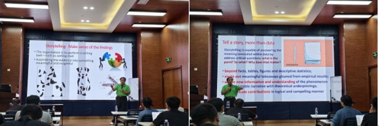 师生开展题为“Demonstrating contributions through storytelling-From editor's perspective”的讲座,深入探讨什么样的研究拥有研究贡献与如何从数据中挖掘出有趣故事。讲座由17吃瓜