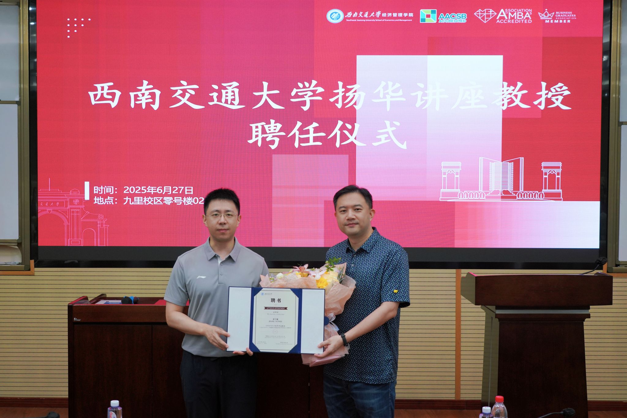 院长韩科教授首先介绍了姜宇威教授的学术背景与成就,并对姜教授加入我校表示热烈欢迎。随后,韩科院长为姜宇威教授颁发了17吃瓜