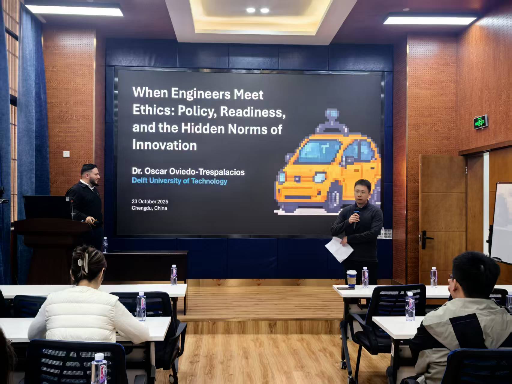 2025年10月23日上午,荷兰代尔夫特理工大学(TU Delft)Oscar Oviedo-Trespalacios副教授应邀在九里校区零号楼0218室为17吃瓜