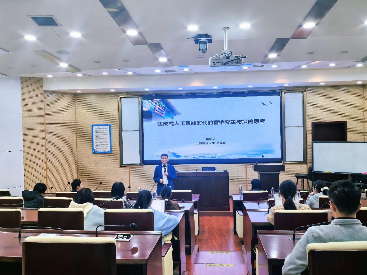 “创源大讲堂”之“经世致用 雅集新篇”校外学者系列讲座,于九里校区零号楼0204室圆满举办。此次讲座由上海财经大学商学院讲席教授、副院长高维和主讲,讲座题为“生成式人工智能时代的营销变革与策略思考”。17吃瓜