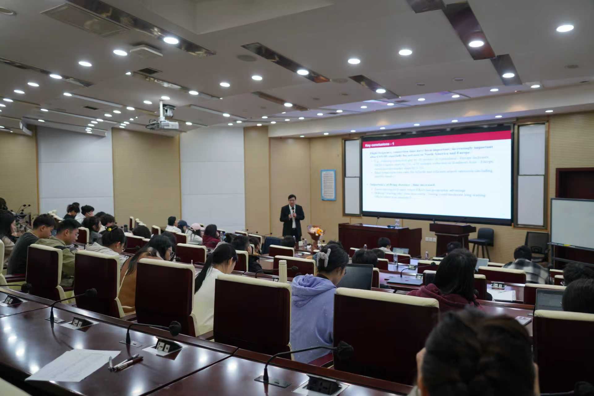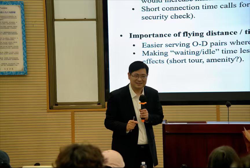 聘任仪式结束后,符啸文教授应邀带来题为Strengthening Aviation Hubs: from measurement to actionable plans的专题讲座,聚焦航空枢纽建设的 “测量-行动” 路径,分享其团队的前沿研究成果。
