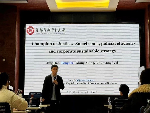 2025年12月12日上午,首都经济贸易大学金融学院何枫教授应邀在九里校区零号楼0218室为17吃瓜
