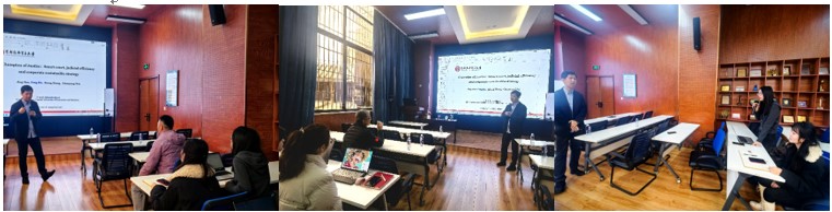 师生作题为“Champion of Justice: Smart Court, Judicial Efficiency and Corporate Sustainable Strategy”的学术讲座。此次讲座由学院马锋副院长主持,学院部分教师及研究生参加了此次讲座,马锋副院长首先对何枫教授的学术成果进行了介绍,同时对何教授的到来表示热烈的欢迎与感谢。