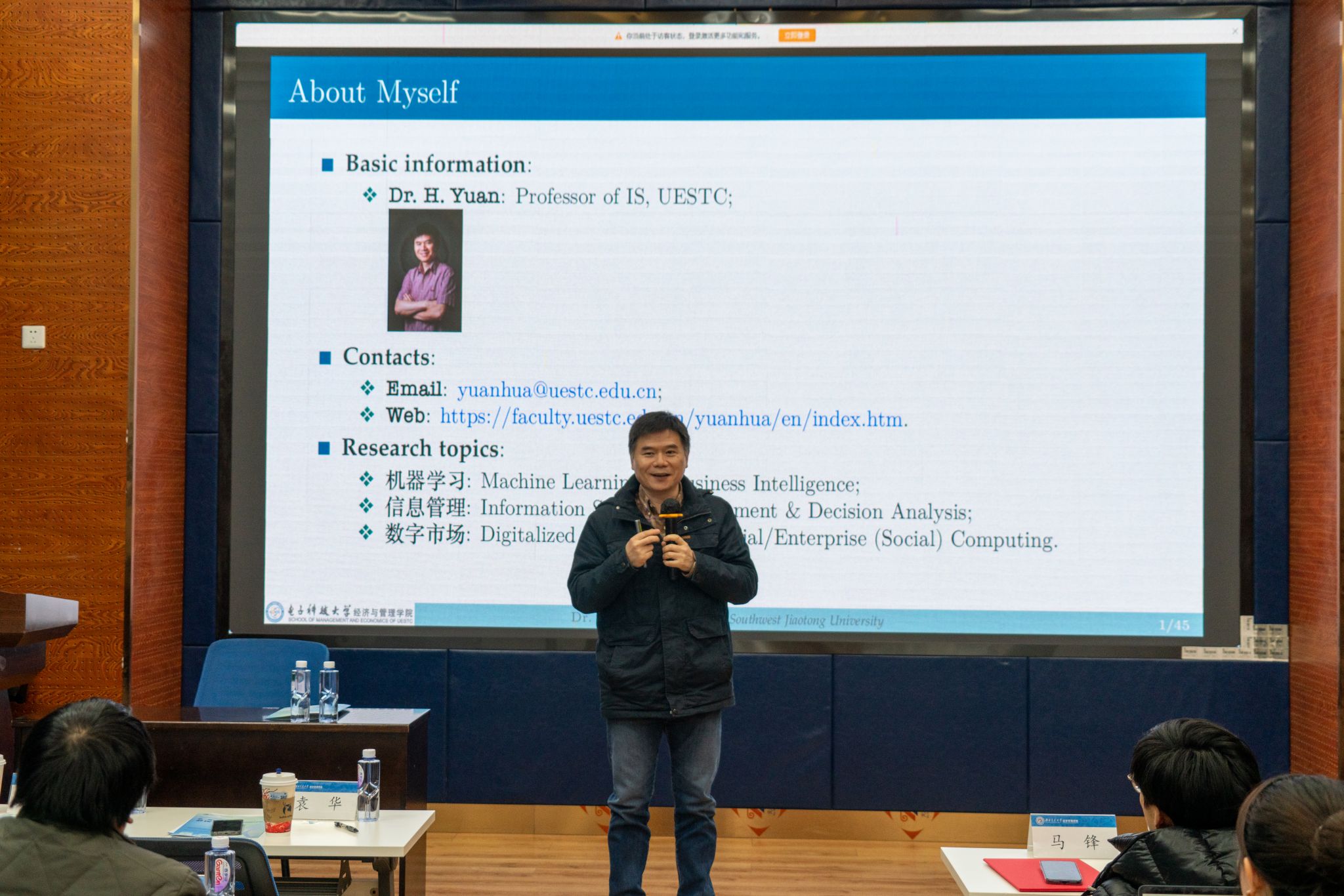 信息管理(IS)学科的高质量发展,深化在该领域的学术影响力,并加强校际科研合作与交流。会议特邀电子科技大学袁华教授和钱宇教授做主旨报告,4位电子科大和西南交大的研究生做主题分享。研讨会吸引了17吃瓜
