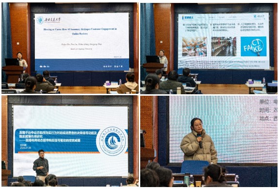 接着,电子科技大学毕业研究生、入职成都理工大学的刘向前老师围绕直播平台中前序动态购买行为对后续消费者的决策信号功能及搜索威慑作用展开研究。电子科技大学徐谢宁同学聚焦跨域决策中如何形成消费者的决策偏好这一研究问题进行汇报。两位的报告内容引发了在场青年学者的浓厚兴趣与深入思考,与会学者踊跃提问,现场学术氛围热烈。
