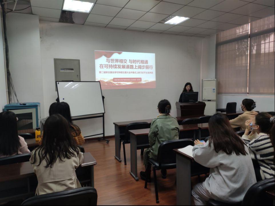 硕士2020级第一党支部在九里校区0217教室,开展了“习近平主席在第二届联合国全球可持续交通大会开幕式上的主旨讲话”的专题学习。本次会议由支部内的魏倩倩同志进行主讲,支部内15名党员参与活动。