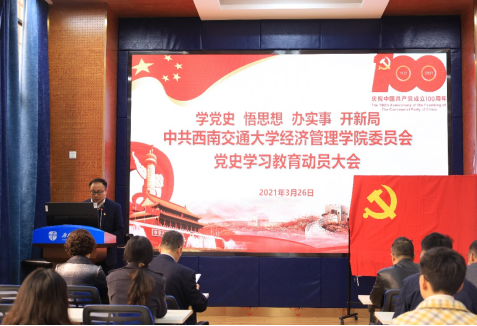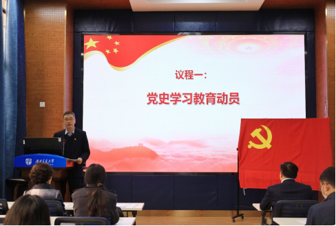 在九里校区零号楼0218教室召开党史学习教育动员部署大会,认真学习贯彻习近平总书记在党史学习教育动员大会上的重要讲话精神,认真落实学校党委工作要求,对学院开展党史学习教育进行全面动员和安排部署。