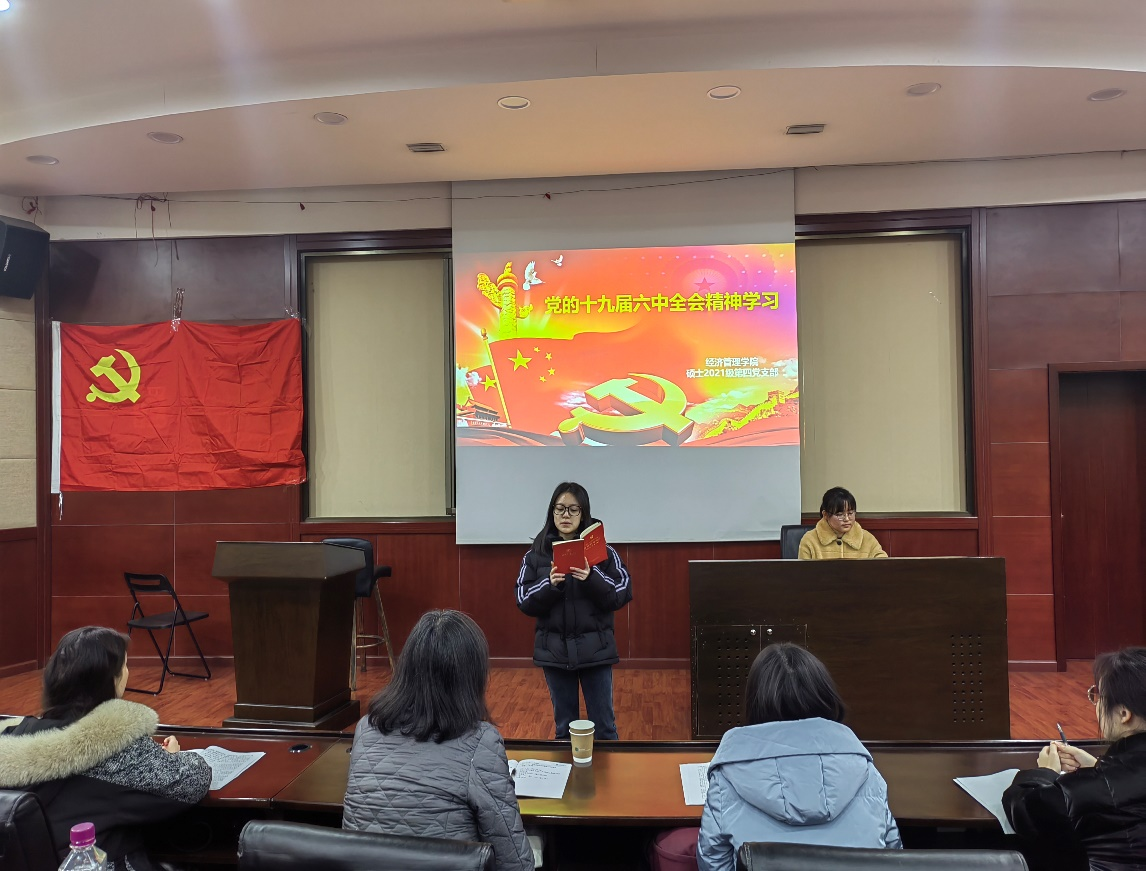 硕士2021级第四党支部开展了“党的十九届六中全会精神”的政治学习活动及预备党员入党宣誓仪式。活动由党支部书记吴欣悦主持,校巡视组陈燕灵老师出席指导,党支部共30人全部参加了此次活动。