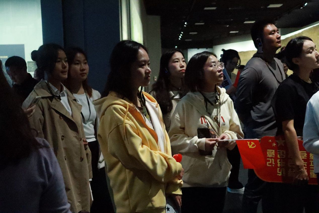 参观结束后,本科第一党支部在展馆门口进行了分享与交流。支部成员积极发言,张铭思甜、迟奕晨和梁奕祺同学将自己家乡的传统文化发展和个人自身经历与本次参观相结合,讲述自己油然而生的民族自豪感。党支部副书记王子琦对本次实践研学活动进行了总结,他指出习近平文化思想是对中国化时代化马克思主义文化理论的丰富发展和重大创新,明确了新时代文化建设的路线图和任务书,希望支部成员将此次的实践研学与学习习近平文化思想结合起来,在日后的学习生活中,坚定文化自信,自觉弘扬中华优秀传统文化,赓续中华文脉,担当起建设中华民族现代文明的时代使命。