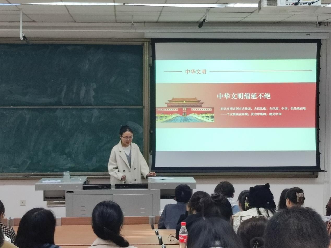 接着,张铭思甜和虞丽君结合自身前往三星堆博物馆研学的所见所闻和心得体会,与支部成员共同学习和探讨在新时代如何做好宣传思想文化工作。她们提到,在古埃及、古巴比伦、古印度和中国这四大文明古国中仅有我国的中华文明延续不断、经久不衰;作为新时代的青年,我们要坚定文化自信,紧跟党的步伐,增强担负文化使命的责任感使命感。