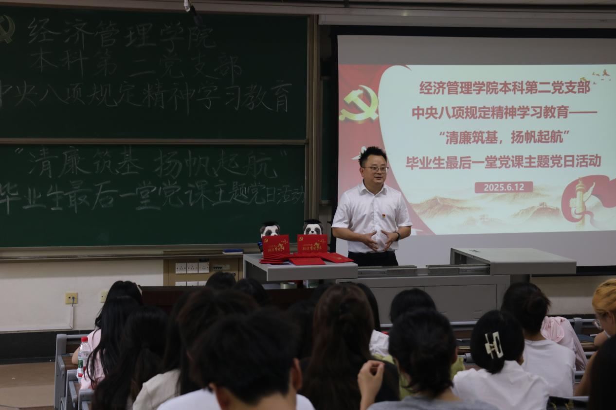 本科第二党支部于J4310开展深入贯彻中央八项规定精神学习教育——“清廉筑基、扬帆起航”毕业生最后一堂党课主题党日活动。