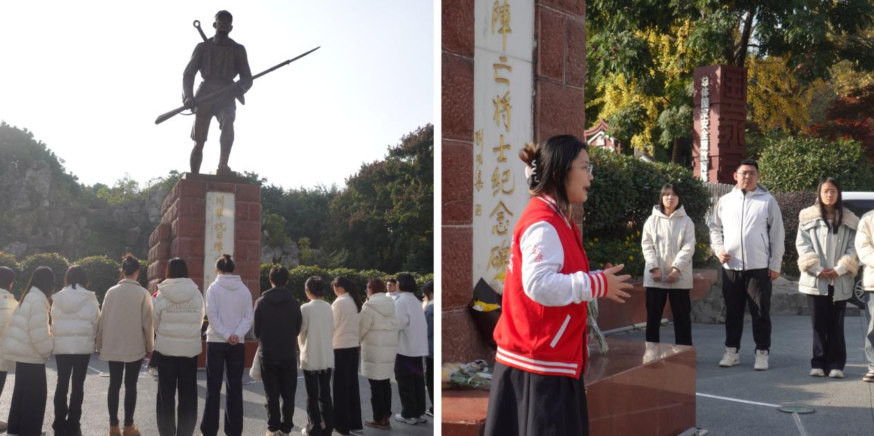 随后,队伍转往成都人民公园,在庄严肃穆的川军抗日阵亡将士纪念碑前,开展了一场“雕塑下的大思政课”。学讲团成员深情讲述了川军将士身着单衣草鞋、毅然出川抗战的动人故事。“抗战军队中每五六人就有一名四川人”,这组沉甸甸的数字,让全体同志直观感受到川军为民族存亡所付出的巨大牺牲与凛然气节。