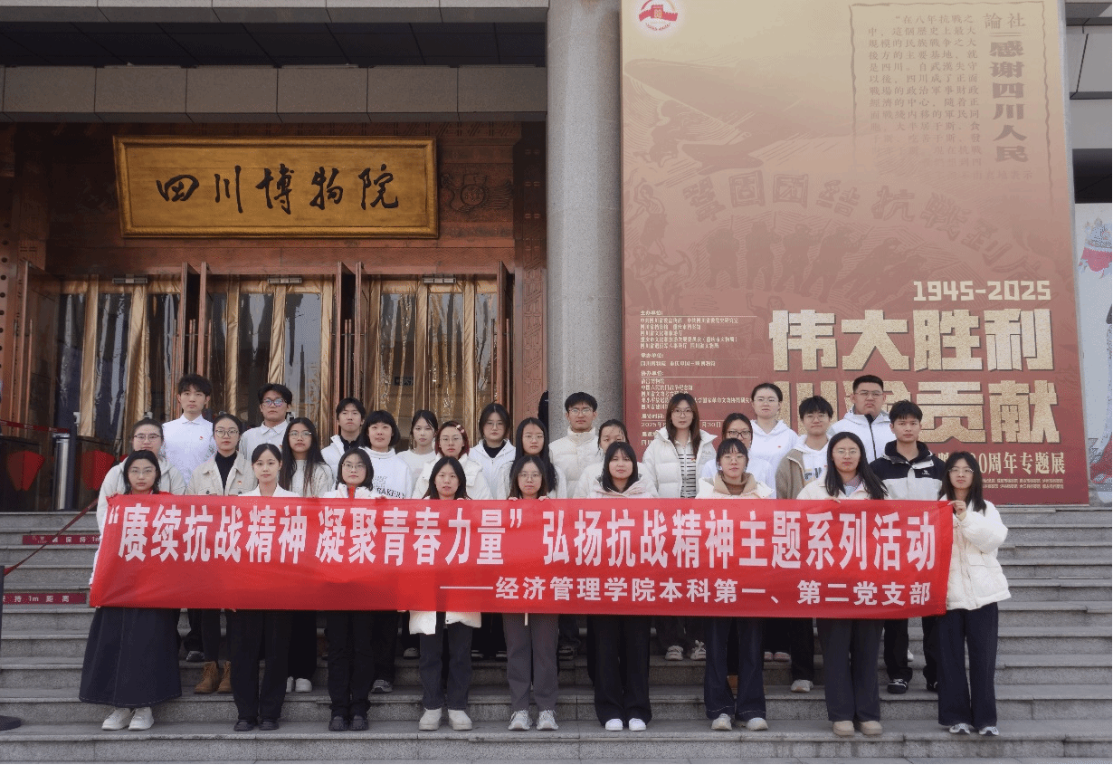 本科第一、第二党支部及红路研究生理论学讲团成员共30人,赴四川博物院与成都人民公园开展“赓续抗战精神,凝聚青春力量”弘扬抗战精神主题党日活动。