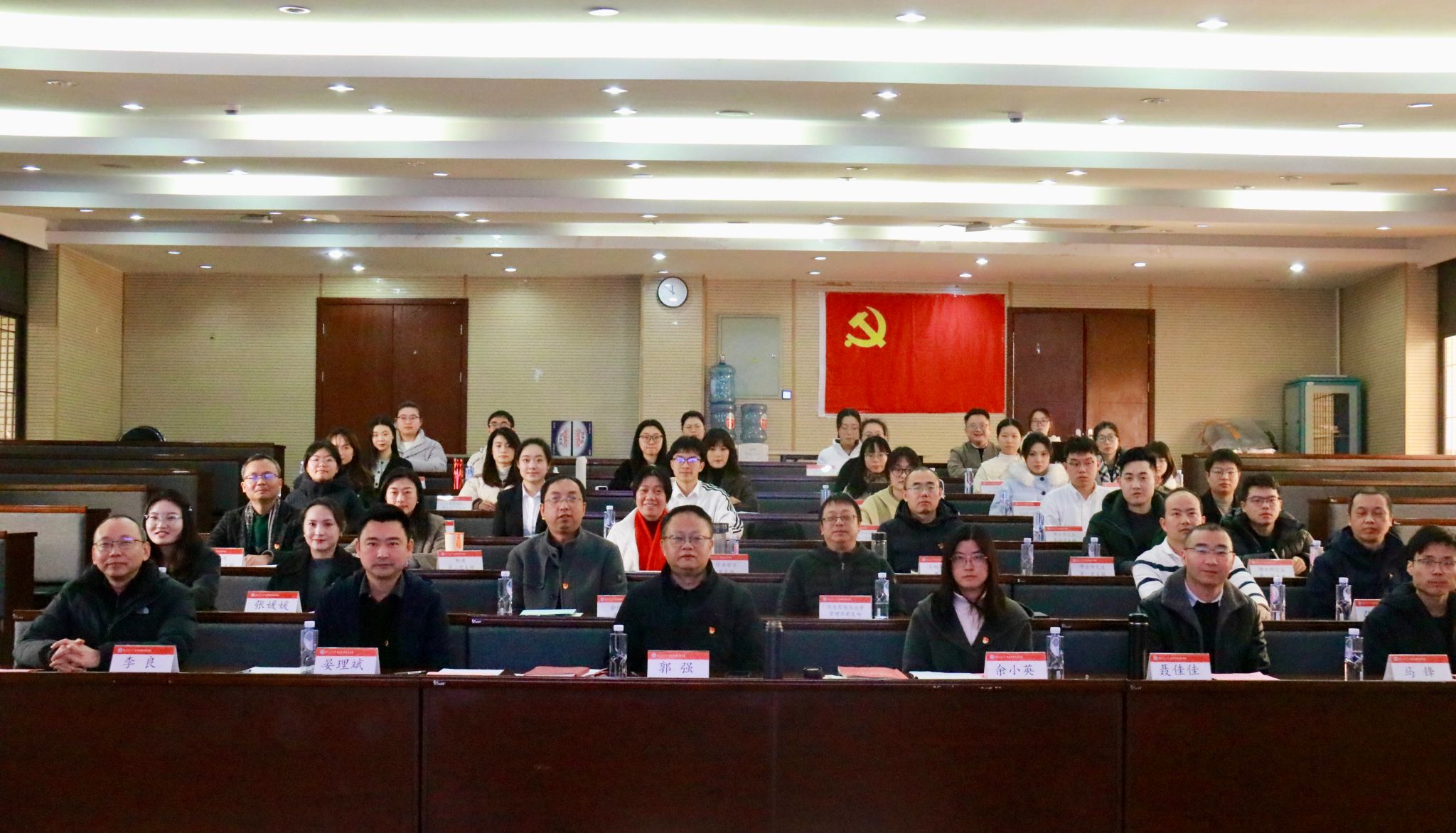 2025年4月22日,学院党委在0218教室召开深入贯彻中央八项规定精神学习教育阶段性工作布置会,学院党委书记郭强、副书记余小英、党委组织员以及师生党支部书记30余人参加了会议。