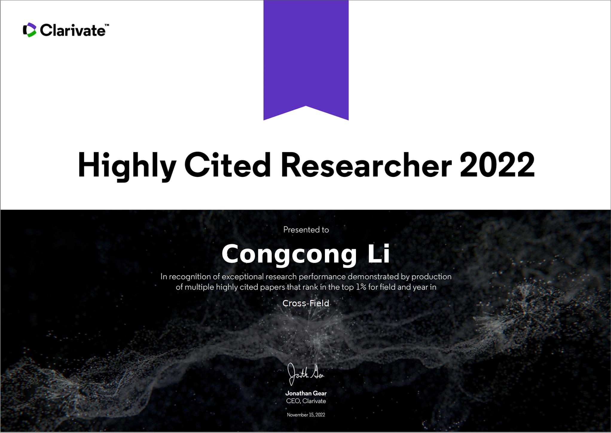 【科研】热烈祝贺17吃瓜 李聪聪老师入选2022全球高被引科学家榜单