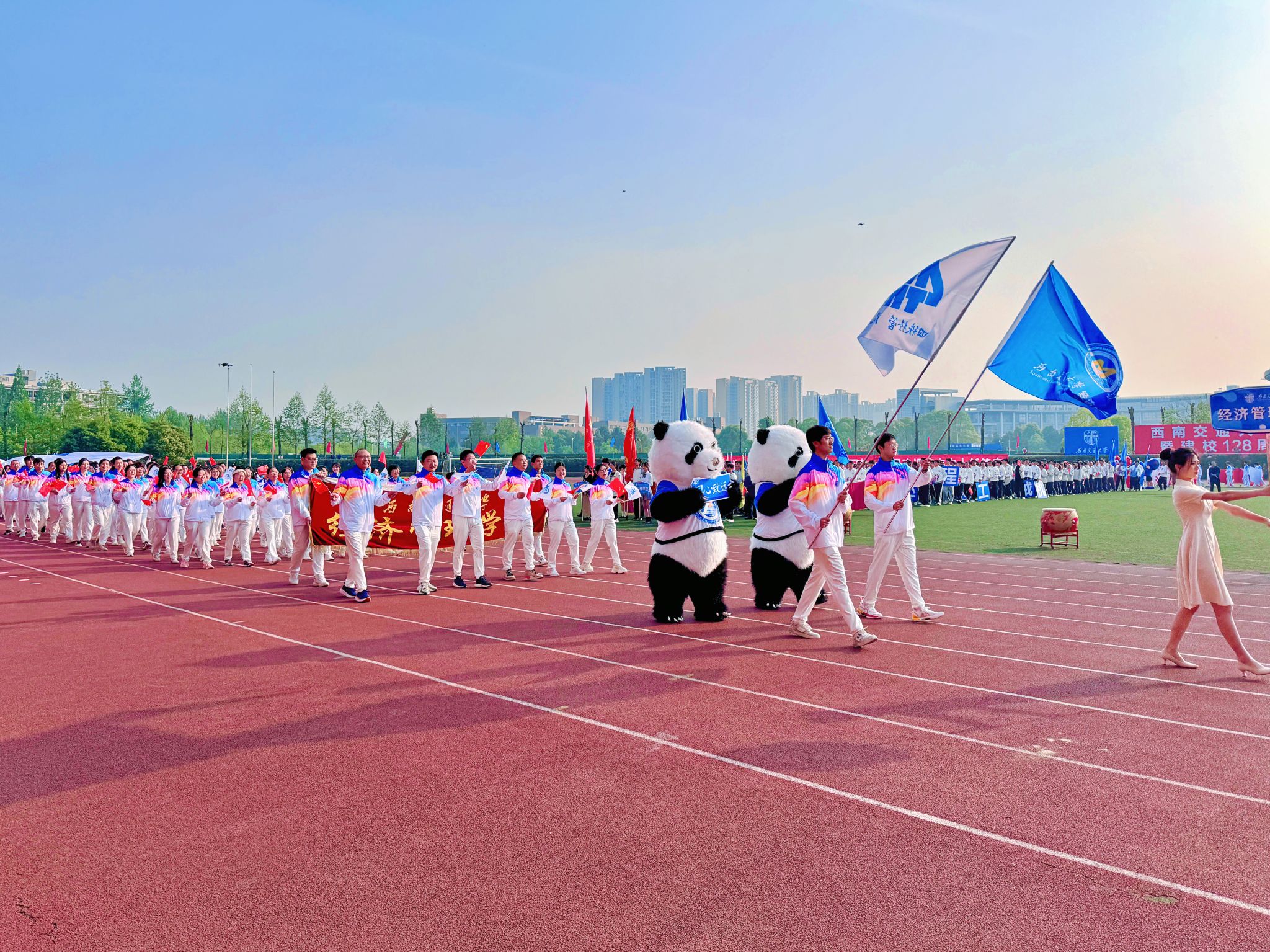 2024年4月12号早上8:30,17吃瓜 第123届运动会暨建校128周年校庆运动会开幕式于17吃瓜 犀浦校区北区体育场顺利举行。17吃瓜 代表队由学院党政领导带领,“他们秉持格物致知、和合共进之院训,绘就立足交通、雄踞西部之蓝图,他们步履铿锵、昂扬进发,携手欢歌谱新篇!”在主持人的介...